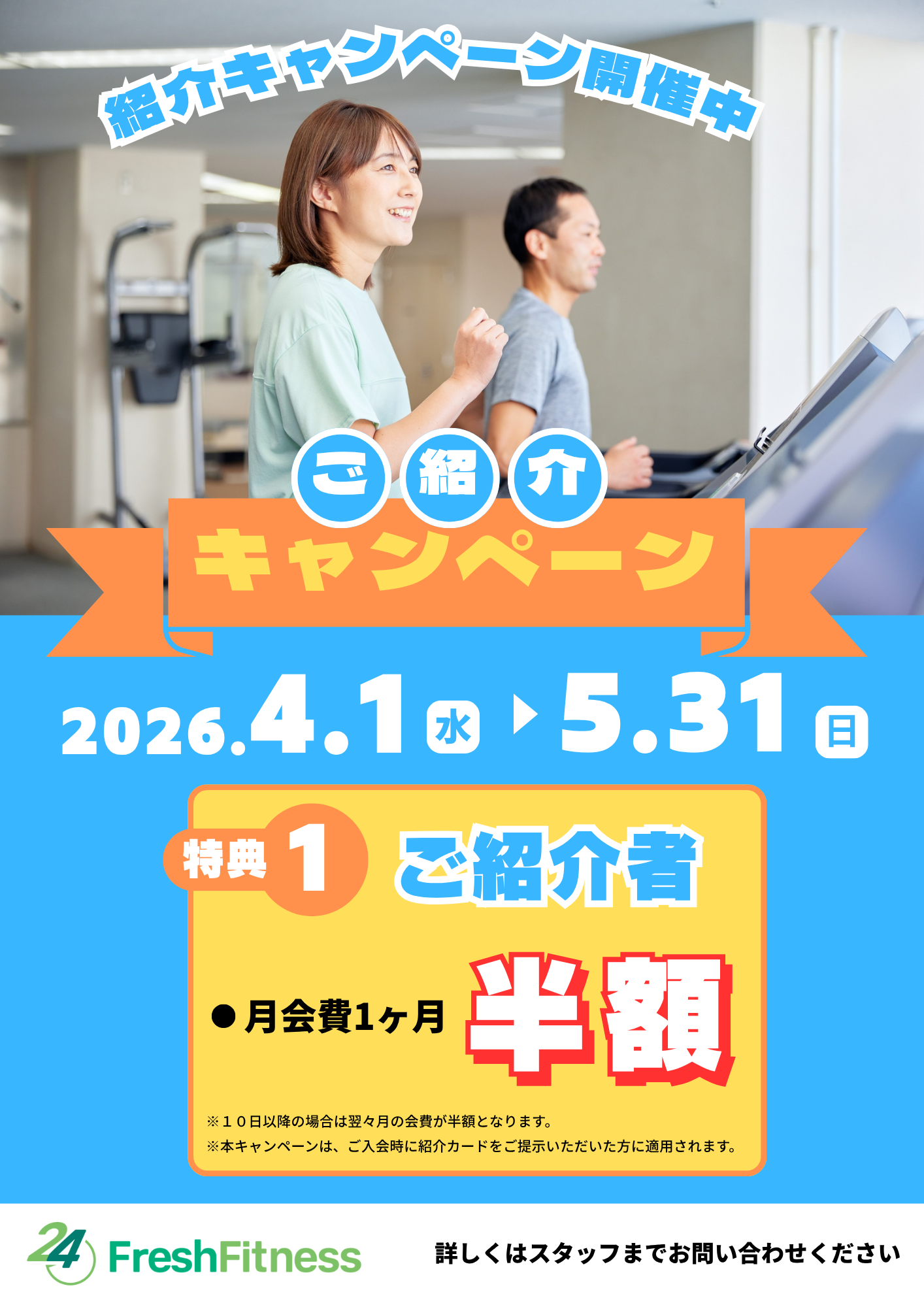 2026.03.29NEW キャンペーン 紹介キャンペーン実施🤝 あの人誘ってみませんか?👀 今なら紹介すると 👉 月会費1ヶ月半額✨ 期間:4/1〜5/31 ※10日以降は翌々月が半額 1人より2人の方が絶対続く🔥 一緒にトレーニングしよう! 詳しくはスタッフまでお問い合わせください。 TOPへ戻る